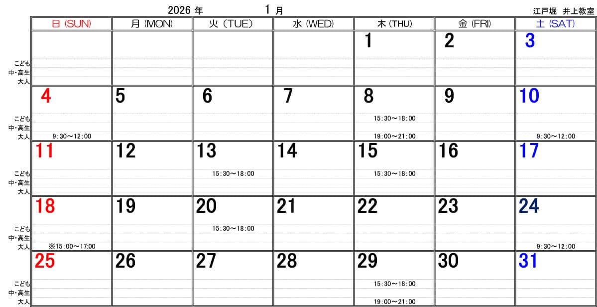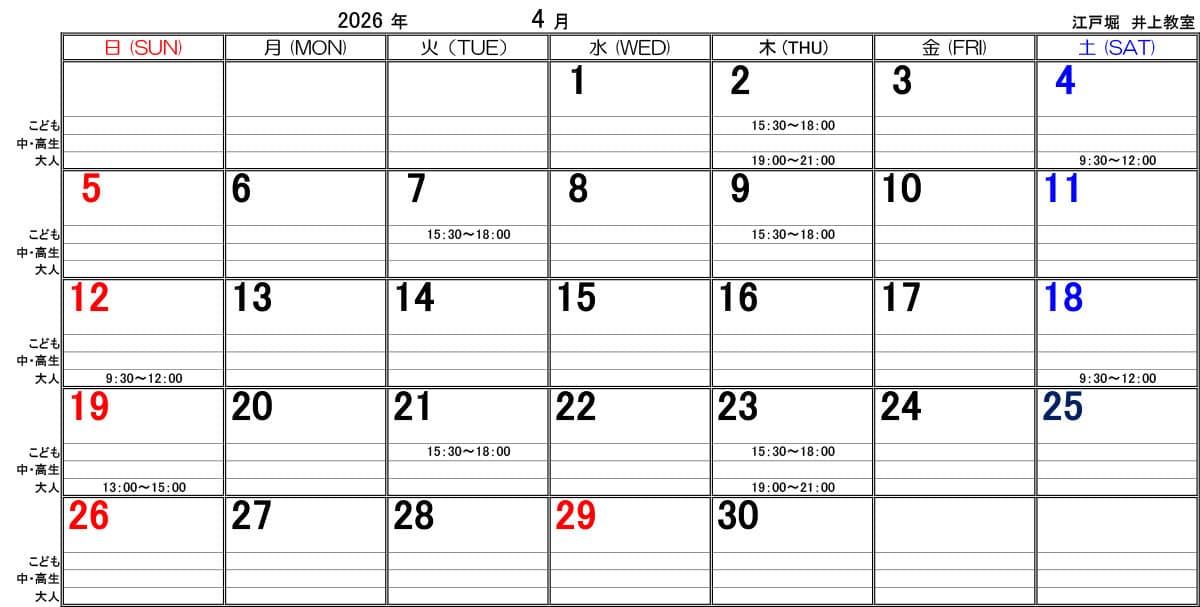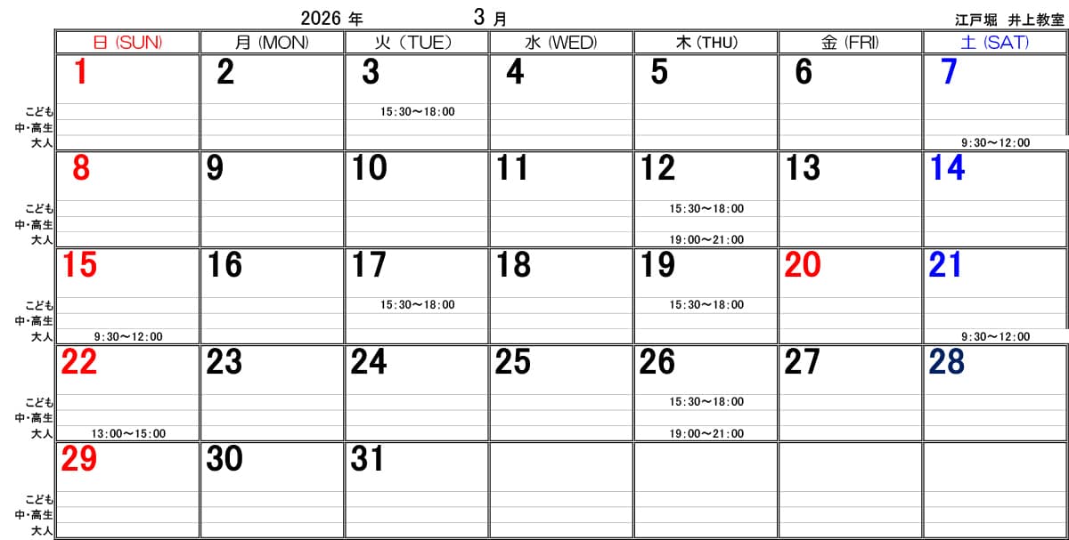 | 大人教室 (高校生以上) |