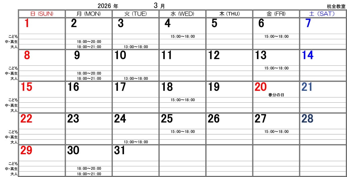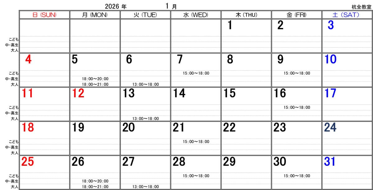 ■金曜日 15:00~18:00 幼年~中学生