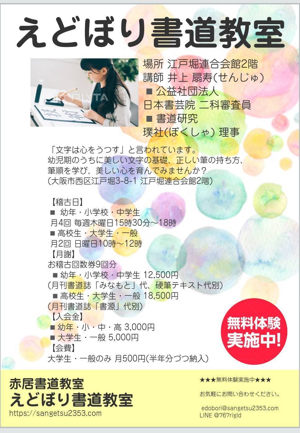| 幼年~中学生 | チケット制(12,500円/9回分) (全国版競書誌「みなもと」代別) |