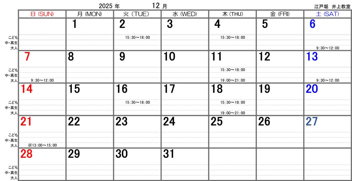 | 大人教室 (高校生以上) |
