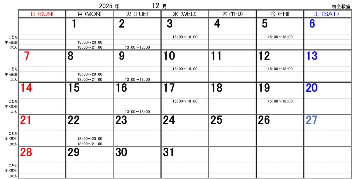 ■金曜日 15:00~18:00 幼年~中学生