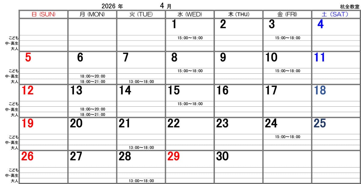■水曜日 15:00~18:00 幼年~中学生
